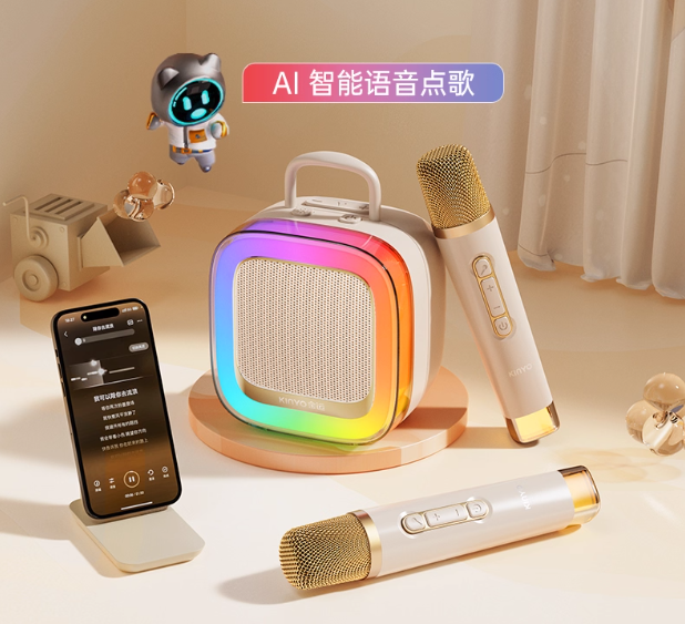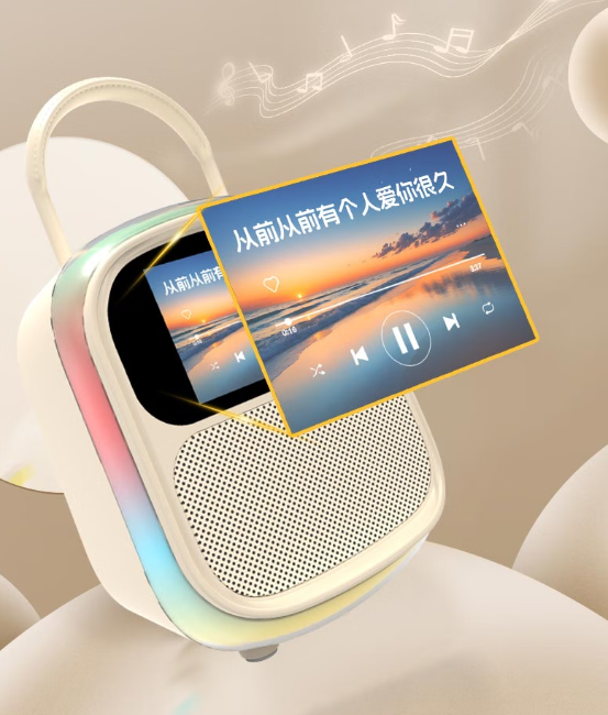 小巧可爱的音响童趣十足,自带高清触控屏彩屏,小孩也能轻松上手。多种RGB氛围灯效自由变换,在K歌时感受不一样的视听体验。