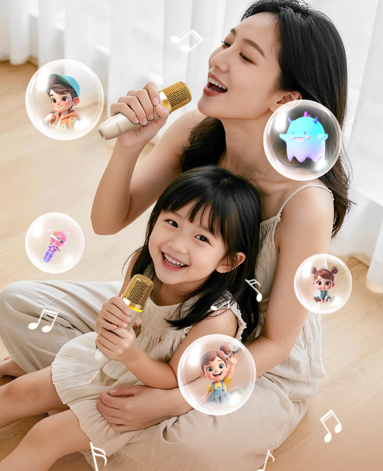 除音响之外,K86还搭配了双麦克风,开机自动配对,大人小孩随时一起合唱玩耍、听故事。寓教于乐,让学习和唱歌一样充满乐趣。