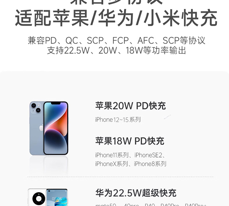 兼容协议:兼容苹果/华为/小米快充