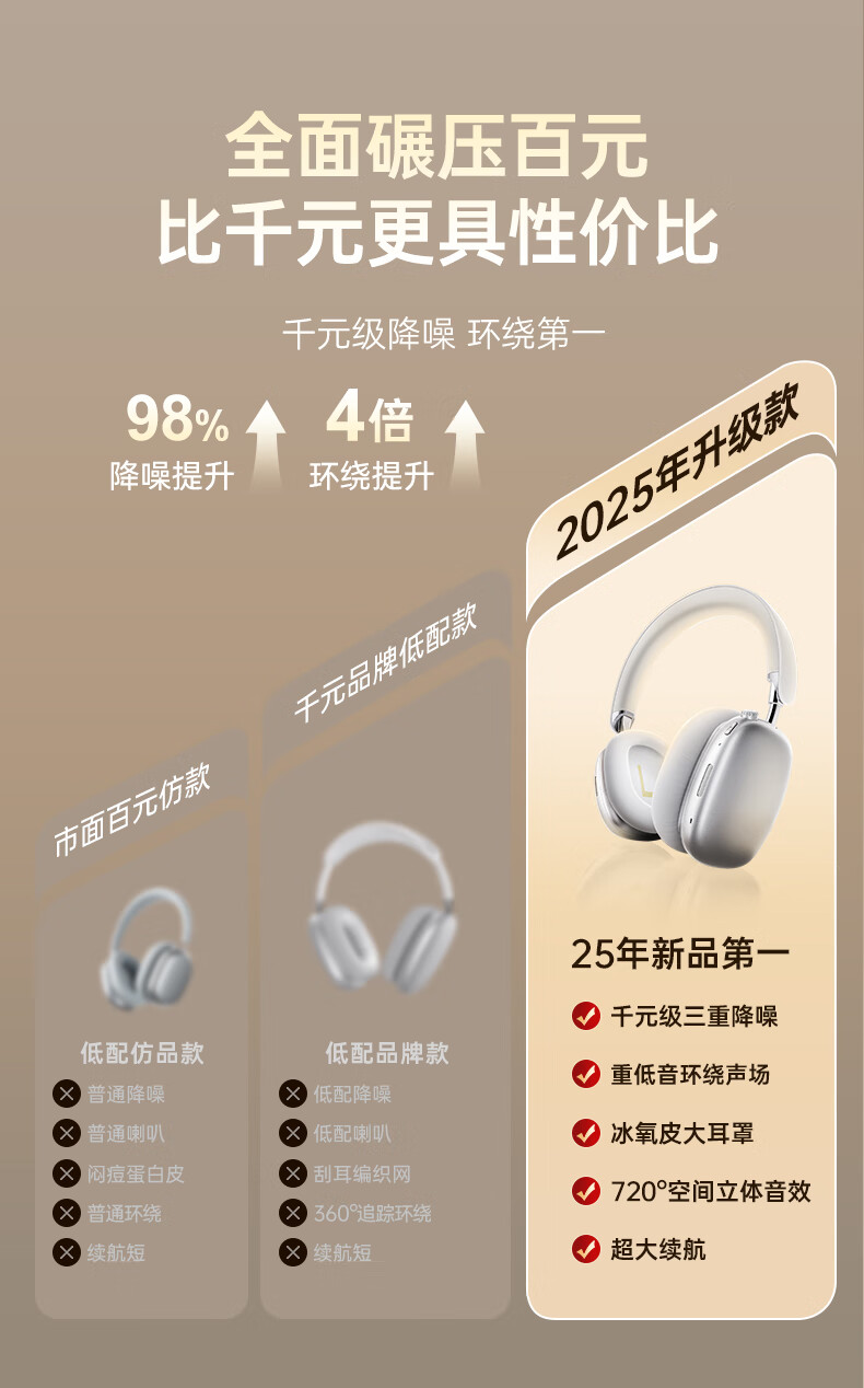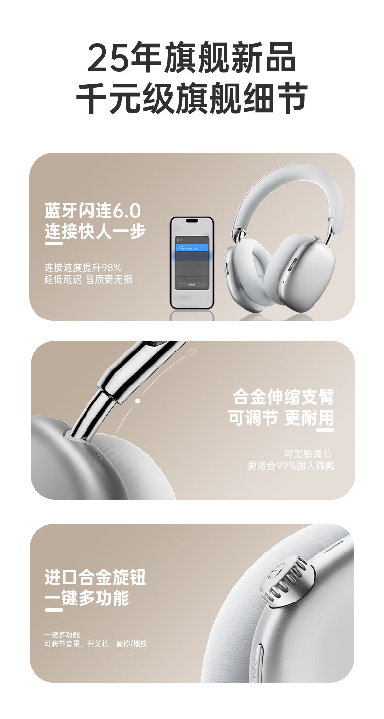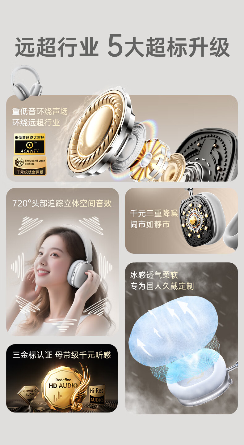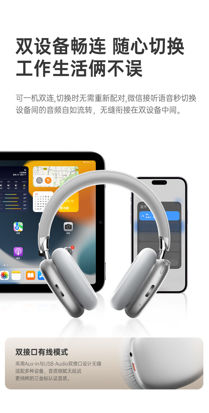 耳机类别:头戴式耳机 主动降噪耳机