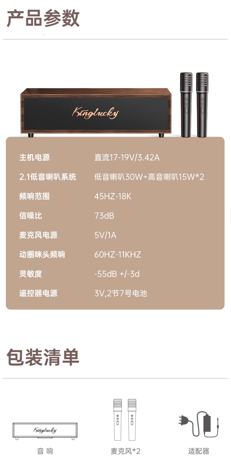 2.1低音喇叭系统:低音喇叭30W+高音喇叭15W*2